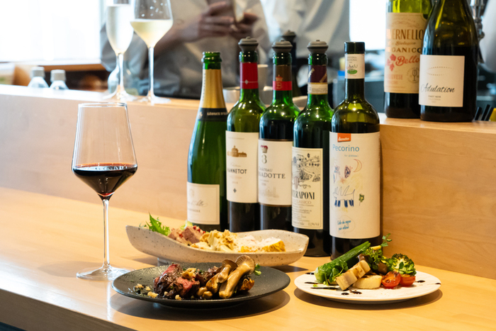 地元で愛されるお店を目指して京都出身の二人、野菜ソムリエのシェフ上田とバーテンダー藤本が営むワイン食堂。