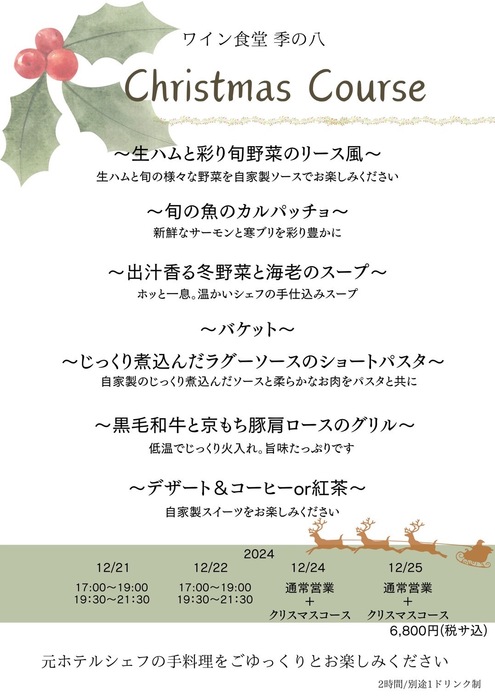 祝日の場合火、水曜営業する場合もあります。また不定休でお休みをいただく場合がございます。