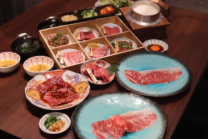 肉は大分の豊後牛を中心に全国の産地から、炭火焼肉とすき焼きにあうものを厳選します。