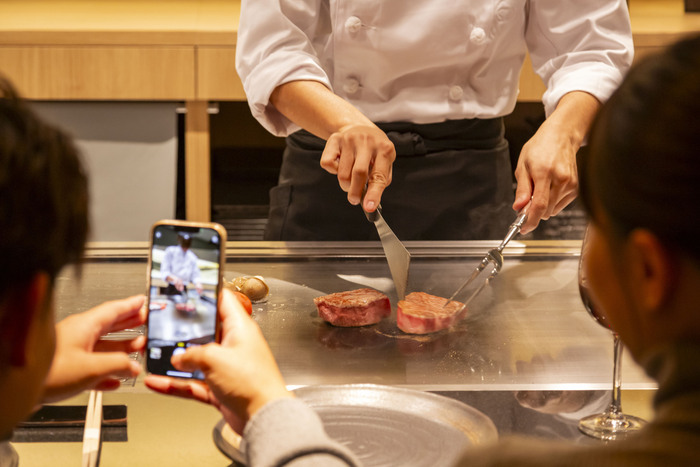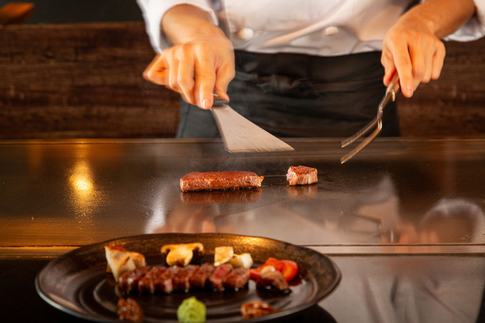 ■一流のシェフが魅せる鉄板焼きの手捌きと、繊細な味付け・盛り付けが華やかな京料理に舌鼓。