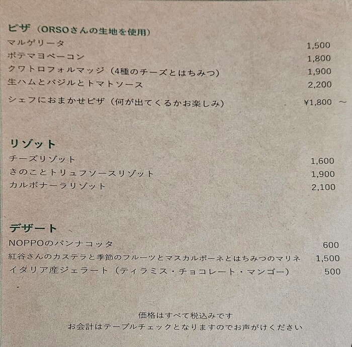 Provided by restaurant