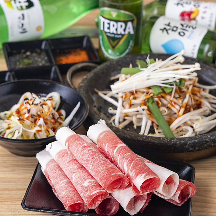 韓国焼肉のお店「イチャドル なんば店」韓国で大人気の「チャドルバギ」が食べられるお店で、5年で300店舗を突破したモンスターブランド!韓国では知らない人がいない押しも押されぬ飲食店ブランド!「イチャドル」が初進出!日本1号店イチャドル難波店は南海難波駅目の前の好アクセス。韓国調の建物の店内は明るくて広いテーブル席が全68席。団体様フロアー貸切有。日本初上陸!韓国で人気のTERRAビール等お酒も充実。