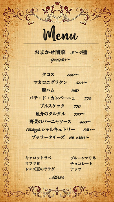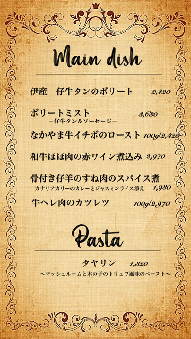 English/Chinese Menu