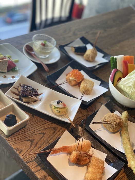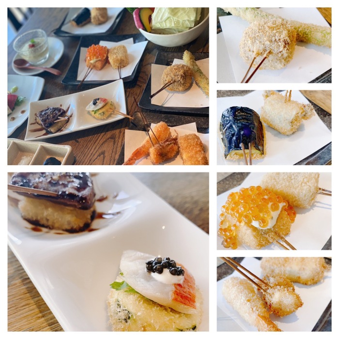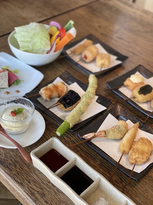 おまかせの串揚げは、肉・魚介・野菜・珍味など組み合わせ、