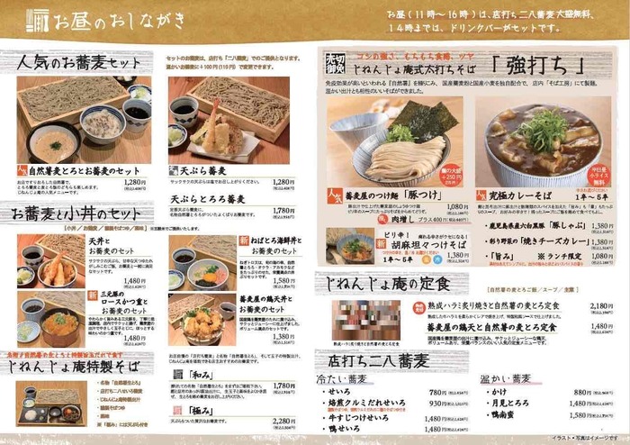 北海道産北早生を使用。のど越しよく歯切れのいい「細打ち」二八蕎麦を毎日店内SOBA工房で打っています。季節によって産地、銘柄を変え、その時期最も美味しい「打ちたて蕎麦」をご提供します。