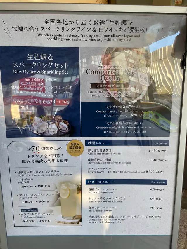 Oyster bar&French Bistro WHARF (Tokyo/Kanto) Book online to earn Rice Dollars URL: https://s.openrice.com/UbKSB035ZmD00 Add.: 2-chome-4-11 Yurakucho Chiyoda City Tokyo, Yurakucho, Hibiya, Tokyo/Kanto Tel.: +81 03-6665-9801
