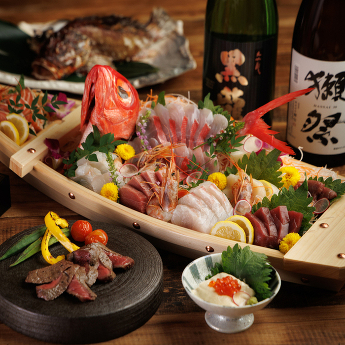 料理人が厳選した産地直送の旬の魚や野菜を使用し、素材の旨みを最大限に引き出した炉端焼きを心と体でご堪能ください。鮮度抜群のお刺身や寿司、和牛料理など幅広くご用意。