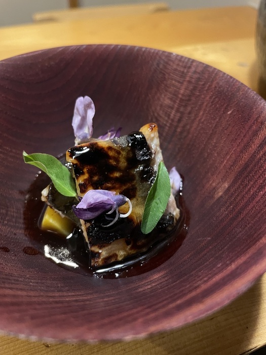 昭和初期に作られた関西火鉢を使い、日本各地から直送される厳選食材をお客様の目の前で一つずつ丁寧に炭火調理いたします。看板は、炭火でじっくり火を通す当店オリジナルの「炭焼き天ぷら」。店名の由来は幸運を招く鳥と言われる「鷽(うそ)」と、これまで起こった悪いことを嘘に変え吉運を導く神事「鷽替え(うそかえ)」から。美味しい食事を楽しみながらその日の疲れや嫌なことを忘れていただきたいという意味を込めました。