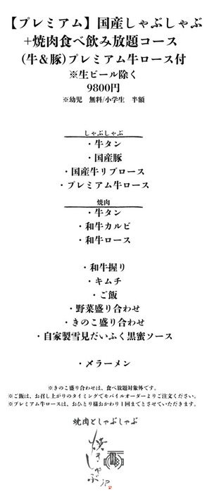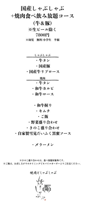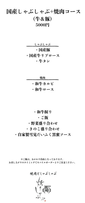 Enjoy yakiniku and shabu-shabu at the same time in a special pot and hot plate, providing a new dining experience that you won't find anywhere else. We are particular about our ingredients, and offer beef such as "Compare the Different Cuts of Japanese Black Beef" and "All-You-Can-Eat Domestic Beef," as well as the delicious "Tokyo X" pork and "Kampo Pork," which is raised stress-free on herbal feed. We provide fresh vegetables directly from a long-established fruit and vegetable company that has been in business for over 50 years. Enjoy a luxurious and blissful time with your loved ones.
