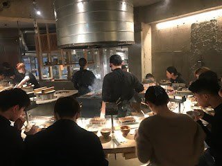 靠着零碎的漢字在電腦點餐機點了餐,坐在座位上,廚師以有限的英語,解釋着枱下櫃桶隱藏的餐品及調味料,再慢慢欣賞廚師即場燒制的烤漢扒。