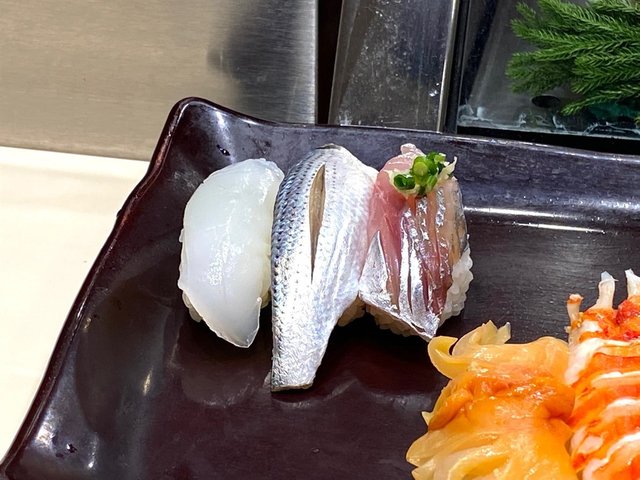 同行嘅日本朋友介紹咗呢間,就入去試吓個手握壽司🍣🍣🍣 由廚師發板俾當日時令海產做壽師,我哋叫咗個 12貫set, (9+2+1), 另送湯一碗 🫕🫕🫕 近水流台d刺身都覺得新鮮甜美d 😇😇😇