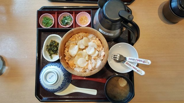 小朋友有專用的杯~~~我們點了兩個餐~~~這個豬扒餐先起來不錯~~~帆立貝配三文魚餐係昕昕至愛,令她食得津津有味