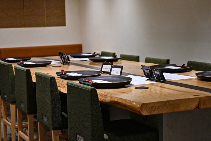 お客様同士で一枚板のテーブルを囲み、非日常な食卓をどうぞ。