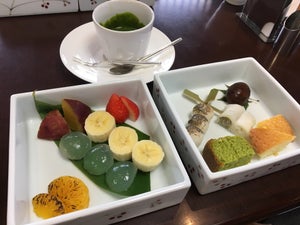 和と洋を味わえる京洋菓子店。フルーツや洋菓子を抹茶ソースにつけて食べる抹茶フォンデュが有名。