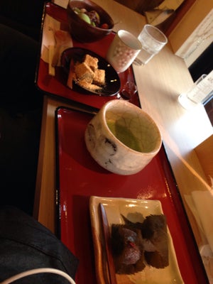 京都遊, 打算到嵐山 嵯峨豆腐 嵯峨とうふ稻 試一餐豆腐餐, 怎料原來有2間分店, 去了本店, 本店是專食甜品, 無正餐選擇既然也入坐, 也不仿試一試 抹茶 甜品 抹茶豆沙凉粉650日圆好食! 我從來不好紅豆, 但這次卻將紅豆食清光! 坐在 窗邊位置, 一邊食著透心涼的甜品, 一邊望著街, 十分寫意!誤打誤撞, 就是旅行的意思!