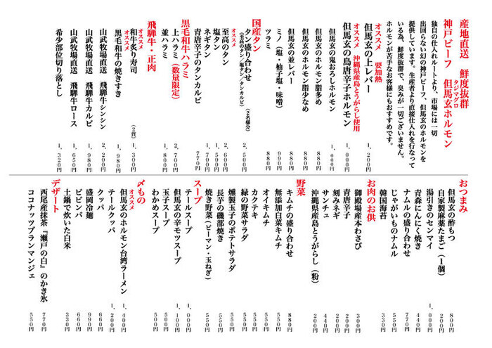 精肉は雌牛を中心とした上質な黒毛和牛をメインに、山武牧場直送の飛騨牛お楽しみいただけます。前菜や薬味等、手作りにこだわり、美味しい焼肉を追求しています。