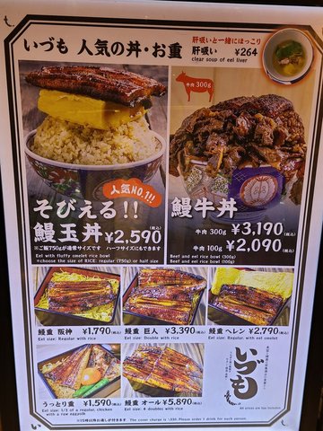Went to this eel resto in Umeda after visiting the Universal Studios Japan and lined up for more than half an hour. .My sis and I ordered Eel with Fluffy Omelette Rice Bowl. Topped with a large piece of eel and a thick layer of egg, the dish was really huge. The egg was soft, while the eel was quite tasty and nicely grilled. My bro ordered Beef and Eel Rice Bowl, while my parents got Eel Size: Regular with Rice. Both dishes smelled fragrant. The beef slices were tender. The portion for each dish was so huge that we couldn't finish them. Luckily the resto could help the customers to transform the leftover food into onigiri, so we saved them for breakfast! .Be aware that each person has to pay a cover charge of JPY330, and must order 1 drink. The instruction was a bit unclear so only when we sat down did we realise this...Also, five of us squeezed into one table, so it was a bit hard for us to eat comfortably, esp after waiting for quite a while. .Interesting that when we entered and left the resto, the staff would hit the drums and delivered some greetings to us. .Ultimately, I thought the food was ok, but may not worth such a long time of waiting. …さらに見る