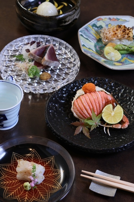 ビルの1階に位置し、趣ある和の雰囲気が漂う当店。厳選食材と美しい器を用いた、本格的な日本料理をご堪能いただけます。ランチでは旬の恵みを味わえる「昼の御膳」をご提供。穴子の焼き霜づくりなど贅を尽くした逸品を、日本酒とともにどうぞ。落ち着きのある店内は、大切な方とのお食事や会食に最適です。席数が少ないため、事前のご予約をおすすめいたします。木の温もりを感じられる空間で、心安らぐ癒しのひとときをどうぞ。