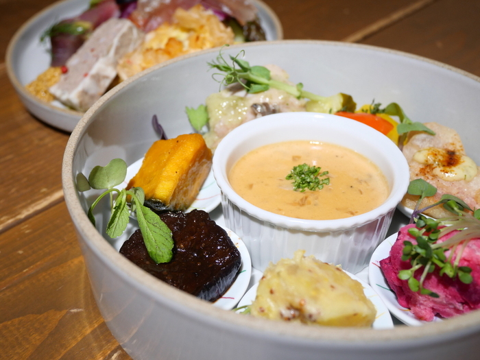 丹波篠山からは但馬牛や近海物の鮮魚を使用した季節の料理と合わせるワインは、ソムリエでもあるシェフが厳選した各国の自然派ワイン。