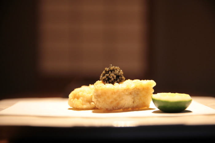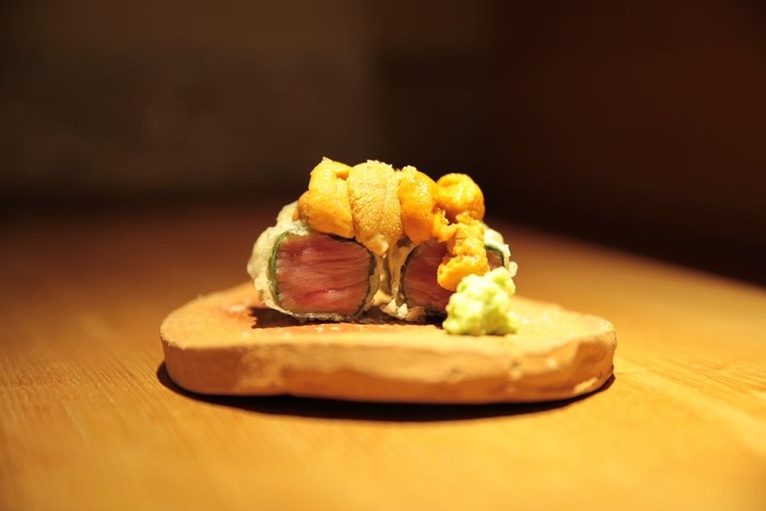 名物の黒毛和牛フィレ肉と生ウニの天ぷらや
