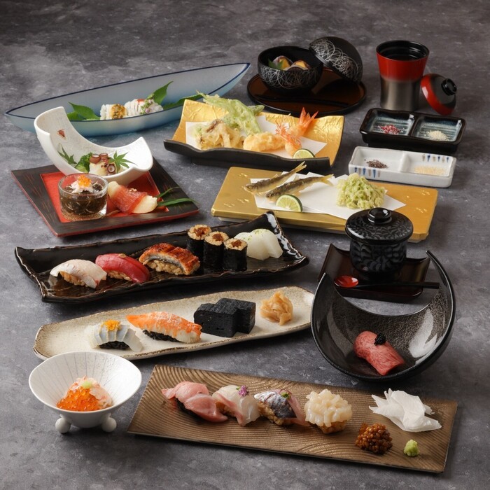 口の中でふわりと広がる絶品の味わいは、日常を彩る至福のひととき。イカ墨を混ぜた黒シャリでご提供している鮨もございます。