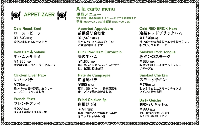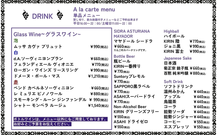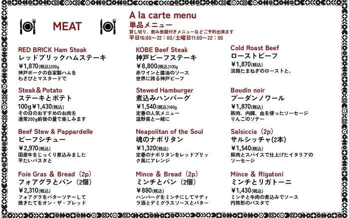 上記は参考情報です。詳細はレストランでご確認ください。
