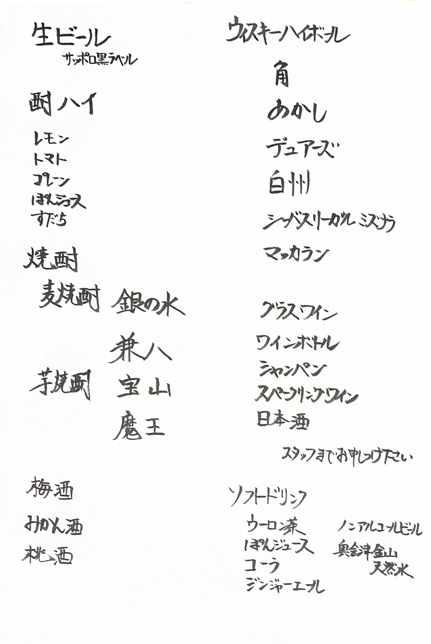 英語・中国語メニュー