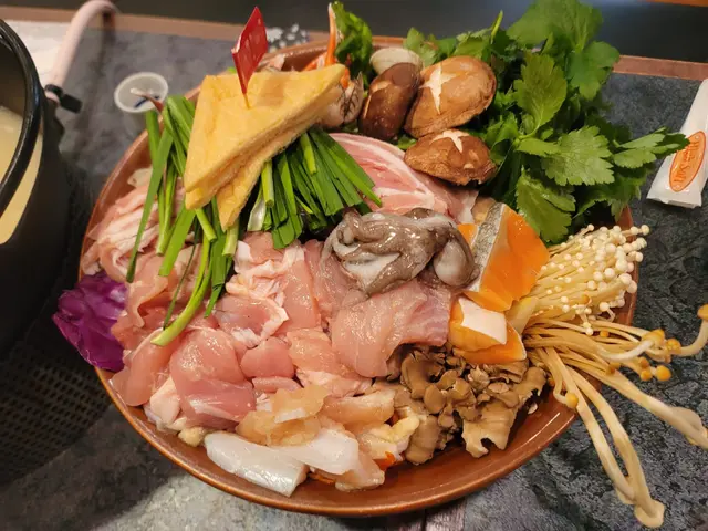 主菜相樸鍋,大大份,乜都有少少,日本產既雞肉,豚肉,魚類,鮑魚,蟹鉗,蜆肉等等。肉類唔覺得有醃過,但係一D雪藏味都冇,全部都好新鮮,幾款菇類都好爽口,底部仲有好多菜,超甜無渣,好滿足,物超所值👍