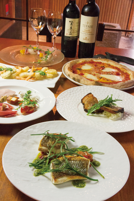 厳選した日本のワインと「地元・四国の食材」にこだわった創作イタリアンを古民家でご堪能頂く時間は、きっと皆さまの心を解きほぐすことでしょう。目でも舌でも楽しんで頂けるよう一品一品お作りしております。地元・四国の畜産家・農家の方々と密接につながった独自の「地産循環型再利用」というサイクルの中で、生産者の顔の見える食材を仕入れています。お客さまにはぜひその成果をお店で存分にご堪能いただければと思います。
