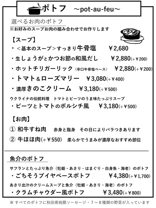 【ディナー】ポトフの数に限りがあるため事前のご予約がおすすめです。