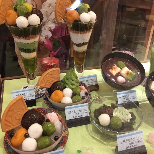 両国駅西口外に有る商業施設「両国のれん」、国技館や美術館にちなんだお土産が買えたり、一杯300円で利き酒が出来たりと楽しい所です。両国橋茶房はのれんの入り口にあって甘味やお雑煮がいただけます。抹茶クリームあんみつはクリームも餡も甘さ控えめで、たっぷりの黒蜜が付いているので自分で糖分を調節できるところが良いです。さらに見る