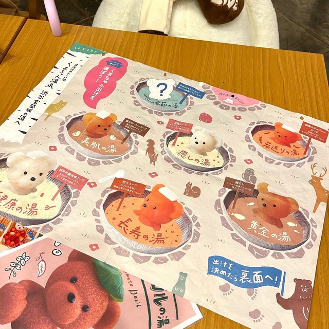 ある日インスタでこの店の熊ちゃん鍋が可愛いと思うから、さっそく友だちを誘って一緒に食べに行ったよ❣️一週間前に予定したくても、なかなかいい時間帯が空いてない😖店の雰囲気は暖かくて熊ちゃんのカチューシャも用意してくれる❕.特選めんこいセット 2,980円まず、7種の熊ちゃんお出汁からそれぞれ好きな鍋を注文する!お出汁によって違う味と色が変わるので、「長寿の湯」の担々スープと「美肌の湯」の鶏コラーゲンスープをどっちを選ぶのか迷ってた🫢最後は鶏コラーゲンスープを注文した🤞🏻他は「癒しの湯」の豆乳スープと「季節の湯」のガーリックトマトバジルスープを注文したが、やっぱり白い熊ちゃん(豆乳スープ)が他の色より映えるよね🤍そしてメインのお肉を選ぶ。今回は店のおすすめセットを選んだ😊これは北海道産の牛肉、豚肉、鶏肉、鶏つくねをミックスしたセット。牛タンや豚肉などセットもある〜全てのセットも野菜が付いてくる🥬最後、入浴後の〆は店のおすすめ水餃子、ラーメン、トッポギが選べる。私はトッポギを選んだけど三個しかなくて量はちょっと少ない??😂可愛くて食べるのはもったいないくらいと思って、たくさん写真を撮っておいた🤣だけど、セットの量は女の子に対しても少ないし、お肉の弾力性や保水性はちょっと...💦この値段でコスパは良いとは言えない😖最後三人は二次会へ行っしゃった🥹********************北海道めんこい鍋 くまちゃん温泉住所 |東京都渋谷区渋谷1-8-10 2F********************北海道人氣熊仔鍋到左渋谷🧸熊仔鍋主要有7款,唔同熊仔會代表唔同口味同顏色!今次係擔擔口味同雞骨膠原口味之間糾結咗好耐,最後都係揀咗雞骨膠原湯底🐔而朋友就揀左季節限定既蒜香羅勒番茄湯底同豆乳湯底~揀完湯底就可以揀肉,今次我揀左北海道產既拼盤set,包括牛、豬、雞,如果淨係想食某款肉都有其他set,而每個set都會附送蔬菜拼盤🥬最後可以揀主食,可以揀水餃、拉麵或者年糕,今次我揀左年糕,但黎到得三條…🫠呢個set性價比唔高,三個女仔都覺得份量少,肉質好孩;雖然可以加購肉同其他配菜,但都唔平,食完最後都係再搵下一間填肚😂黎日本玩既朋友可以唔洗考慮特登黎食……さらに見る