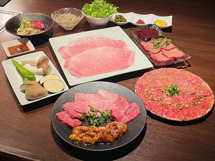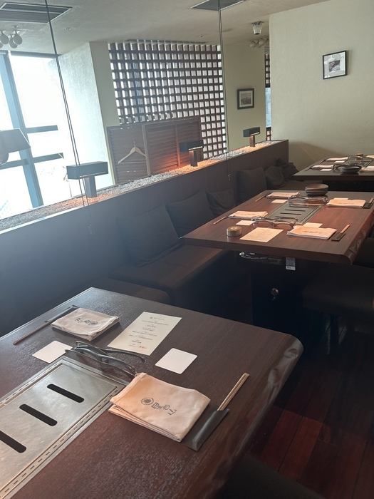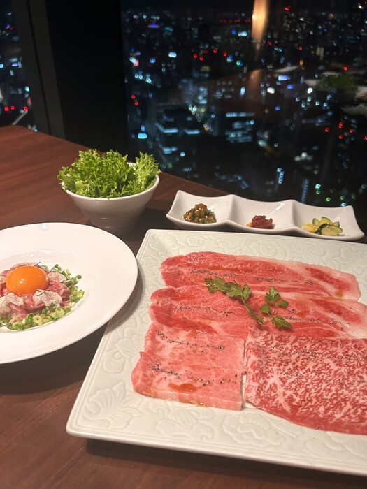 1頭買いした鹿児島和牛や黒毛和牛の最高のお肉を、215mの天空で堪能できる、極上空間。段差やパーティションを多用した店内は、プライベート感を大切にしたつくりで接待、会食、記念日、宴会など、様々なシーンに対応できます。 焼肉の匂いや煙が気にならない“無煙ロースター”全席完備なのでデート、記念日にも最適。