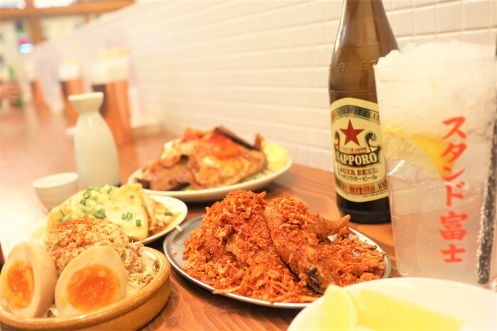 ノスタルジック漂う店内で定食からお酒の肴と老若男女が利用出来る大衆的で新しい食堂をコンセプトとし、昭和から令和の時代の【不変と変化】の良さをマッチさせた大人世代から若者世代まで楽しめる食堂となっております。