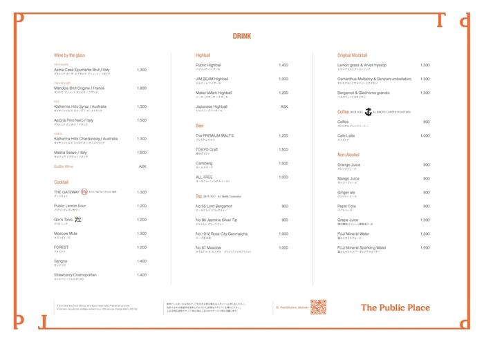 The Public Place (東京/關東) Book online to earn Rice Dollars URL: https://s.openrice.com/UbgSB03CNuE00 住所: 港区高輪2-21-2 ニュウマン高輪 North 28F Tel.: +81 03-6277-4047