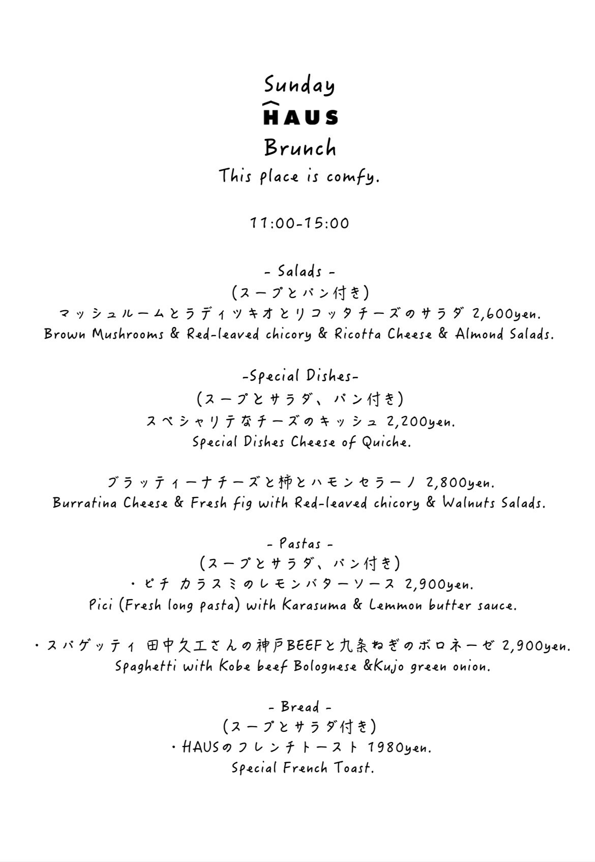 英語・中国語メニュー