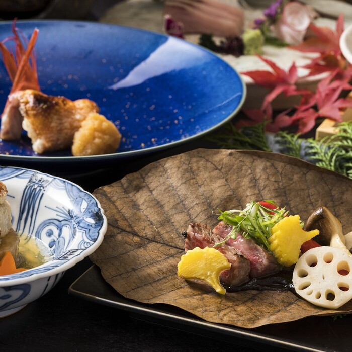Enjoy free-range chicken, black pork, and seafood from Kagoshima Shiroyama course with all-you-can-drink