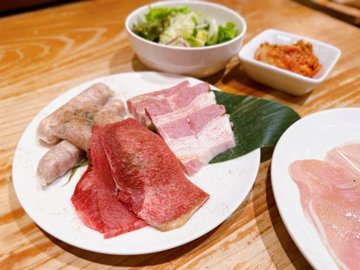 去到日本點少得食燒肉😝,想食下放題所以近近地揀左呢間,可以先經hot pepper預約都幾方便。2個人坐卡位好闊落,唔算大油煙,店員都好nice👍🏻。每次order都要叫店員落單較麻煩(唔知有冇轉)🙈。🔅極上のカカシ (4,950円/位)揀左最貴個rank都係每人HKD$300都唔使,計落都幾抵食。第一轉啲牛都唔錯,油脂分佈平均。不過愈叫啲牛好似愈肥,又有筋☹️,真係一般。💬雖然唔貴,不過愈食愈差就好失望☹️,係店員親切加返分🙈。