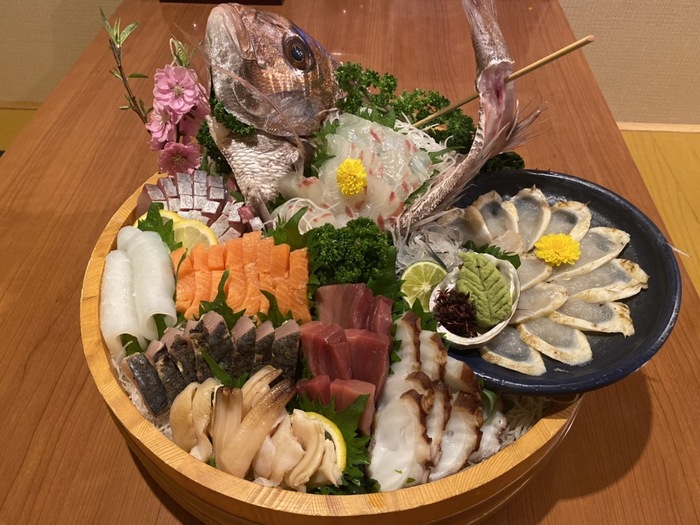 毎朝市場で鮮度の良い魚を仕入れております。お店で提供する際のボリュームも自慢です。また、「じまんしー」といえば地元周南の食材をつかったこだわりの地産地消グルメ。