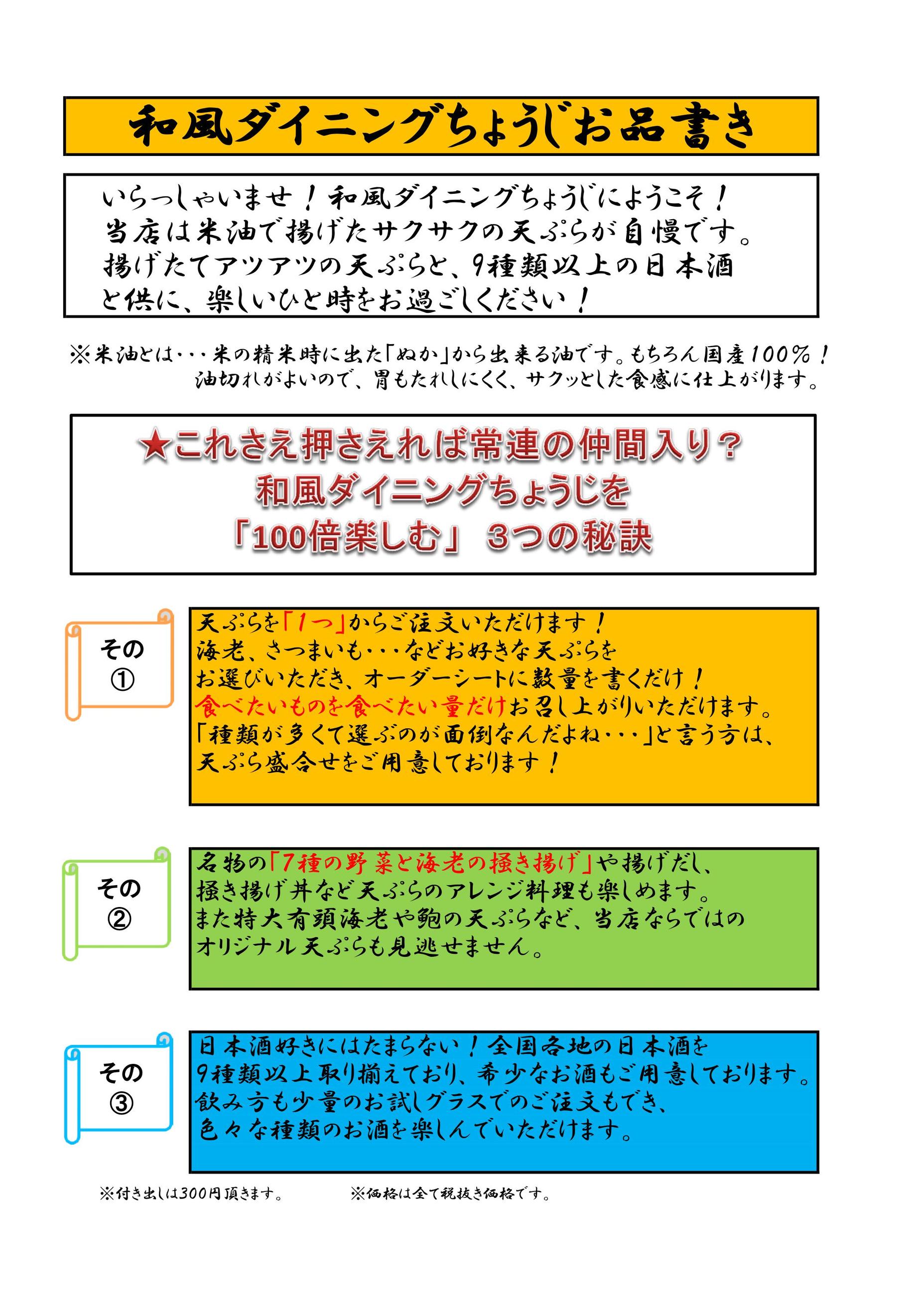 天ぷらと日本酒の居酒屋 和風ダイニング ちょうじ