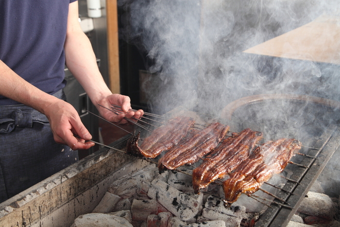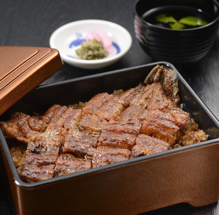 蒸さずに仕上げる【関西焼】その日にさばいた厳選うなぎを、備長炭で「パリッ」と焼き上げ、口に入れると「ふわっ」と香る、風味豊かな一品に。秘伝のタレは甘すぎずさっぱりとした味わい。名物は3通りの食べ方で楽しめるひつまぶし