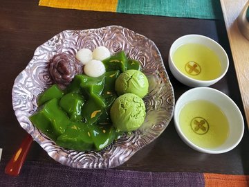 網上好多人推介去宇治一定要去中村藤吉食抹茶,今日特登過黎一試。當日約下午2點,竟然只有2人等位,唔駛5分鐘就有位了,仲可安排窗口位2添