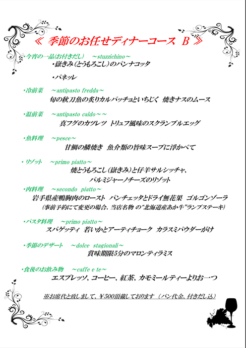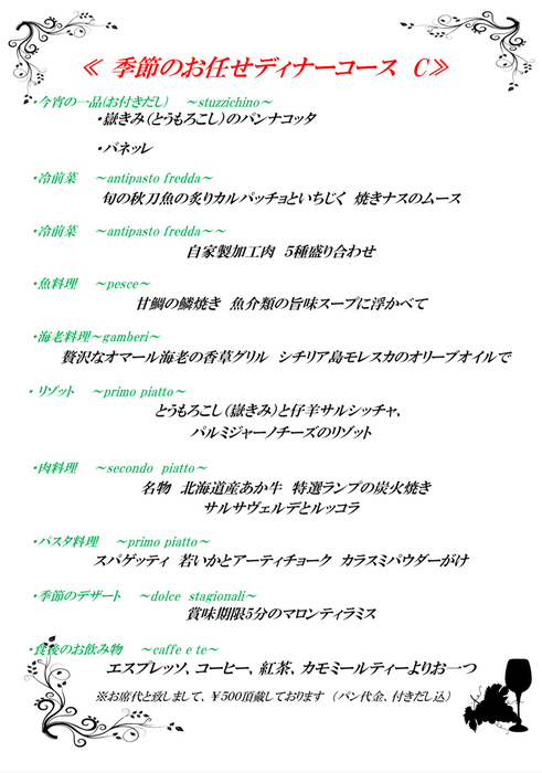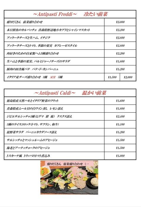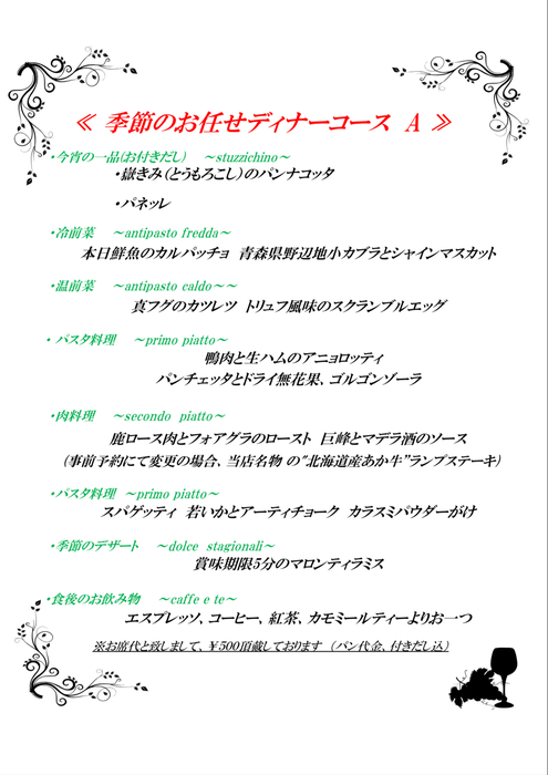 通常コースなどは4名以上 前日までに予約のみ受付