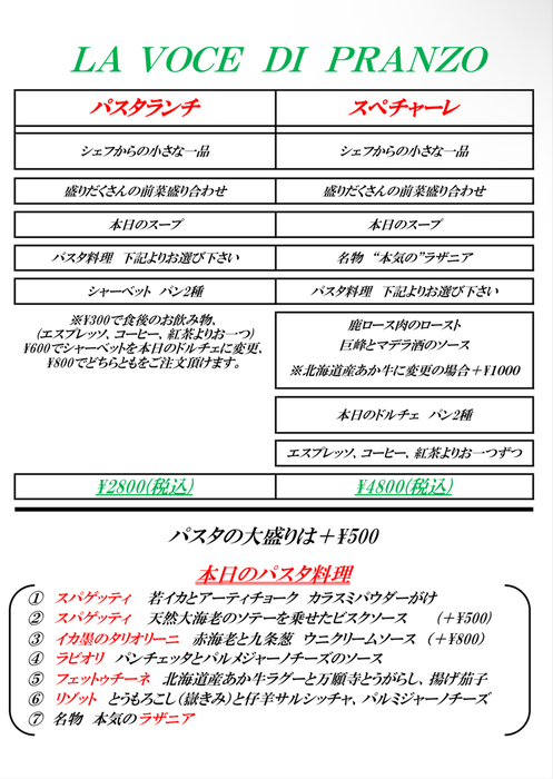 土日祝は通常ランチメニューとなります