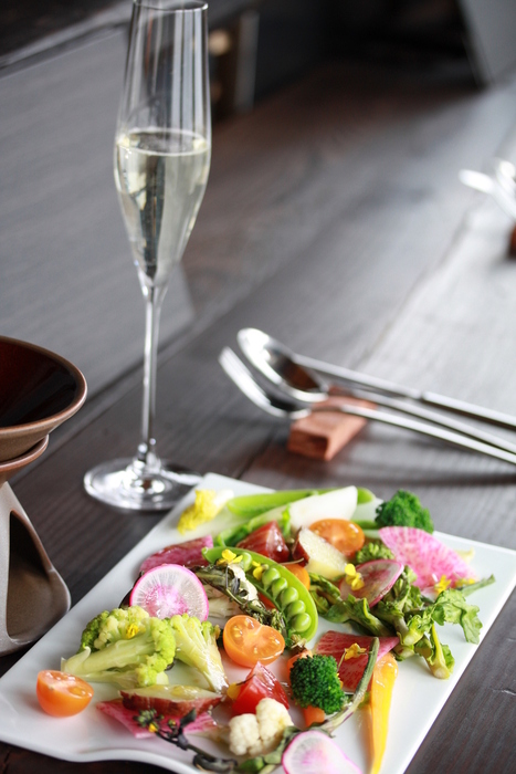 芦屋川駅近くに佇む当店では、新鮮なお野菜、季節の魚介を本格イタリアン料理にてご提供しております。お野菜は北区・三田・吉川などの信頼できる農家さんから、魚介類は和歌山県産の“アカアシ蝦”等を使用。