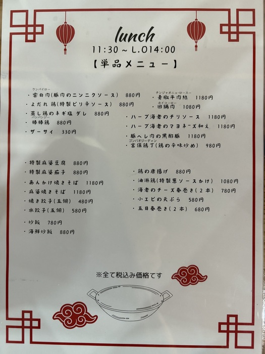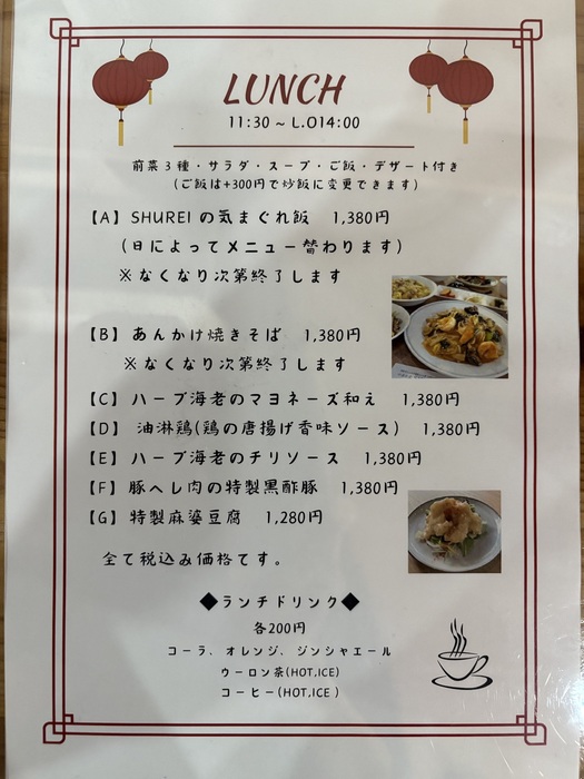 11:30 - 14:30(L.O. ドリンク14:00)