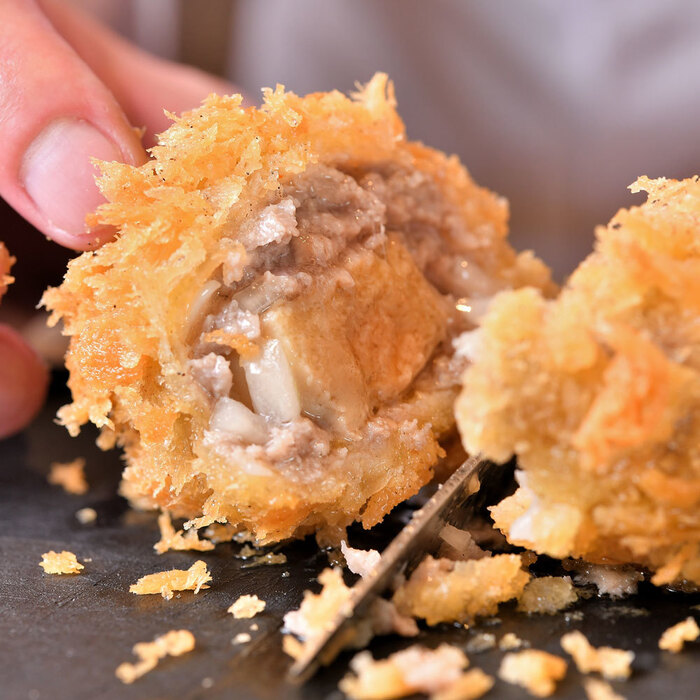 ”音・香り・味・食感・彩”を五感で最大限に感じて頂きたい思いから、オープンキッチンのカウンターで揚げている様子をご覧いただけます。無農薬野菜を中心に揃えた彩り鮮やかなお野菜や、国産のお肉・魚介を贅沢に串揚げでお召し上がり頂けます。素材のおいしさを最大限に魅せるため、パン粉や油の温度を変えて一本一本丁寧に揚げております。