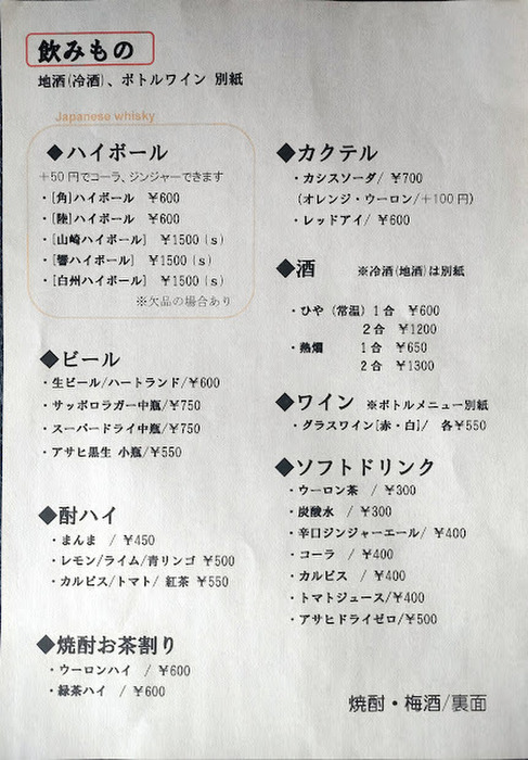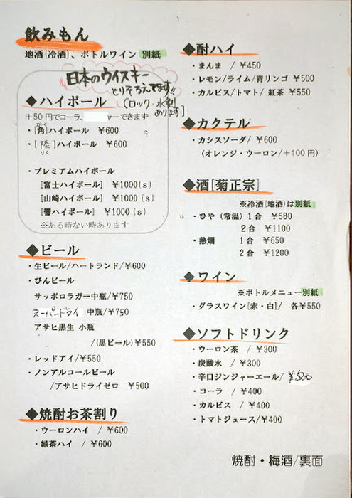 1階カウンター席(L.O. 22:30)