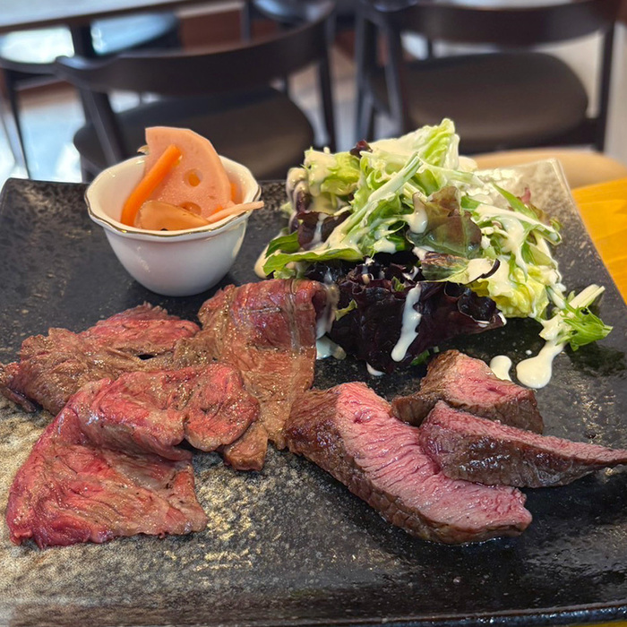 「淡路牛炭火焼ステーキ」や「炙りカルパッチョ」など肉料理は淡路牛を使用