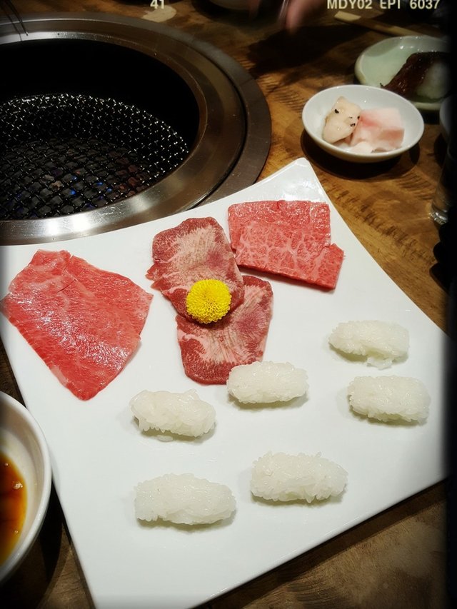 ,食落有香軟、滑潤、嫩滑、爽薄,各有特色,可謂色香味俱全。三種火炙壽司如相般有六片生牛肉,另跟六粒細小o既壽司白飯球。食客只需燒煮牛肉至理想o既熟度,再連同白飯即可自製出火炙和牛壽司。火炙和牛壽司熱辣軟熟,白飯剛好中和牛肉o既油份,組合確真無敵